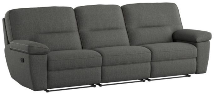 With an updated take on the traditional recliner sofa, the Alberta marries old fashioned comfort with current style. Contemporary charcoal gray, piped edging, and a modern approach to pillow tufting all come together to create this transitional set. A convenient handle tucked between the cushions allows the middle seat to also recline.Read More